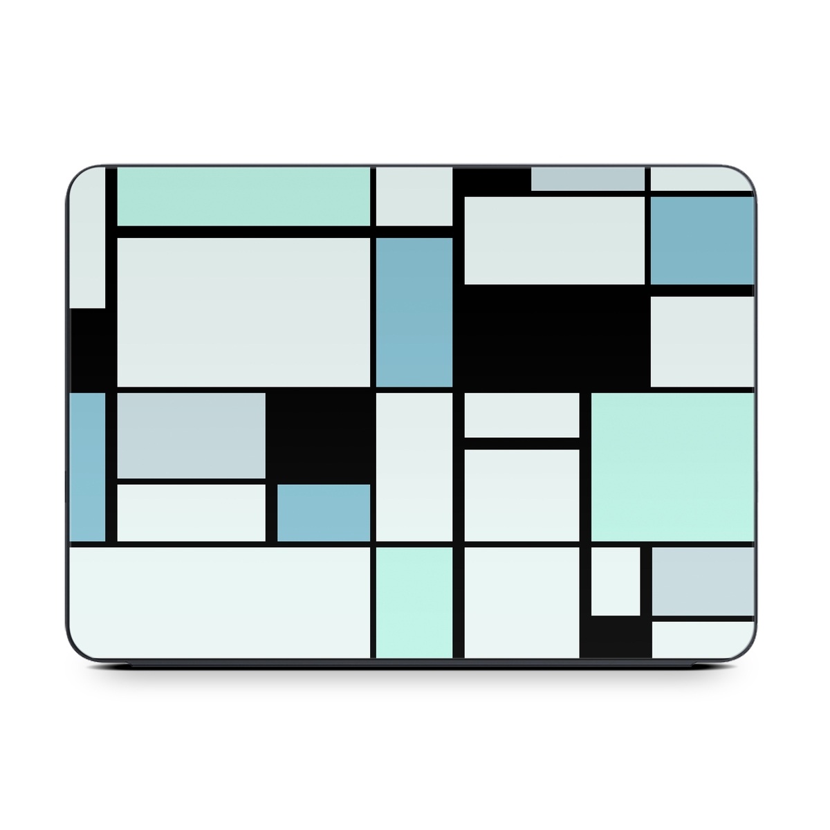 iStyles Smart Keyboard Folio for iPad Series Skin design of Blue, Line, Turquoise, Pattern, Rectangle, Design, Parallel, Square, Symmetry, Tints and shades, with black, blue, green colors, and tagged with patterns, blocks, blue, cool, geometry, lines.