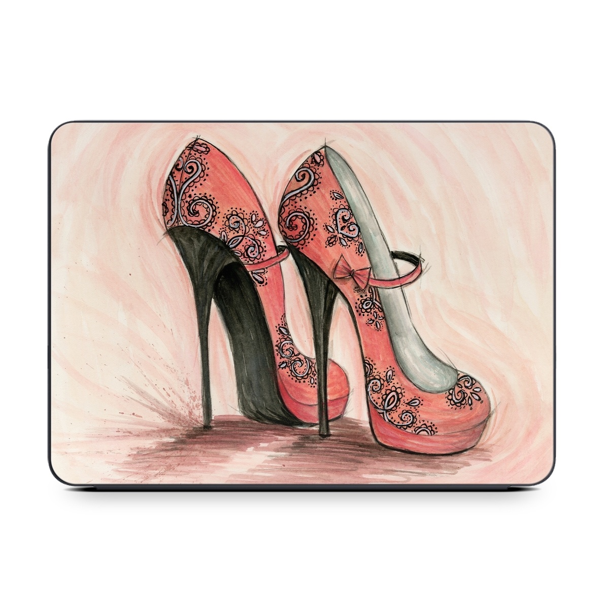 iStyles Smart Keyboard Folio for iPad Series Skin design of Footwear, High heels, Shoe, Pink, Court shoe, Illustration, Leg, Basic pump, Peach, Painting, with pink, gray, red, white, black, green colors, and tagged with objects, fashion, fineart.
