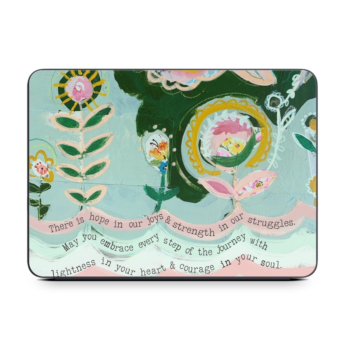 iStyles Smart Keyboard Folio for iPad Series Skin design of Textile, Art, Font, Creative arts, Pattern, Painting, Circle, Illustration, Motif, Drawing, with blue, green, pink, yellow, orange, black colors, and tagged with signs, flowers, collage, flower, flowers, inspiration, quote, quotes, scaprbook.