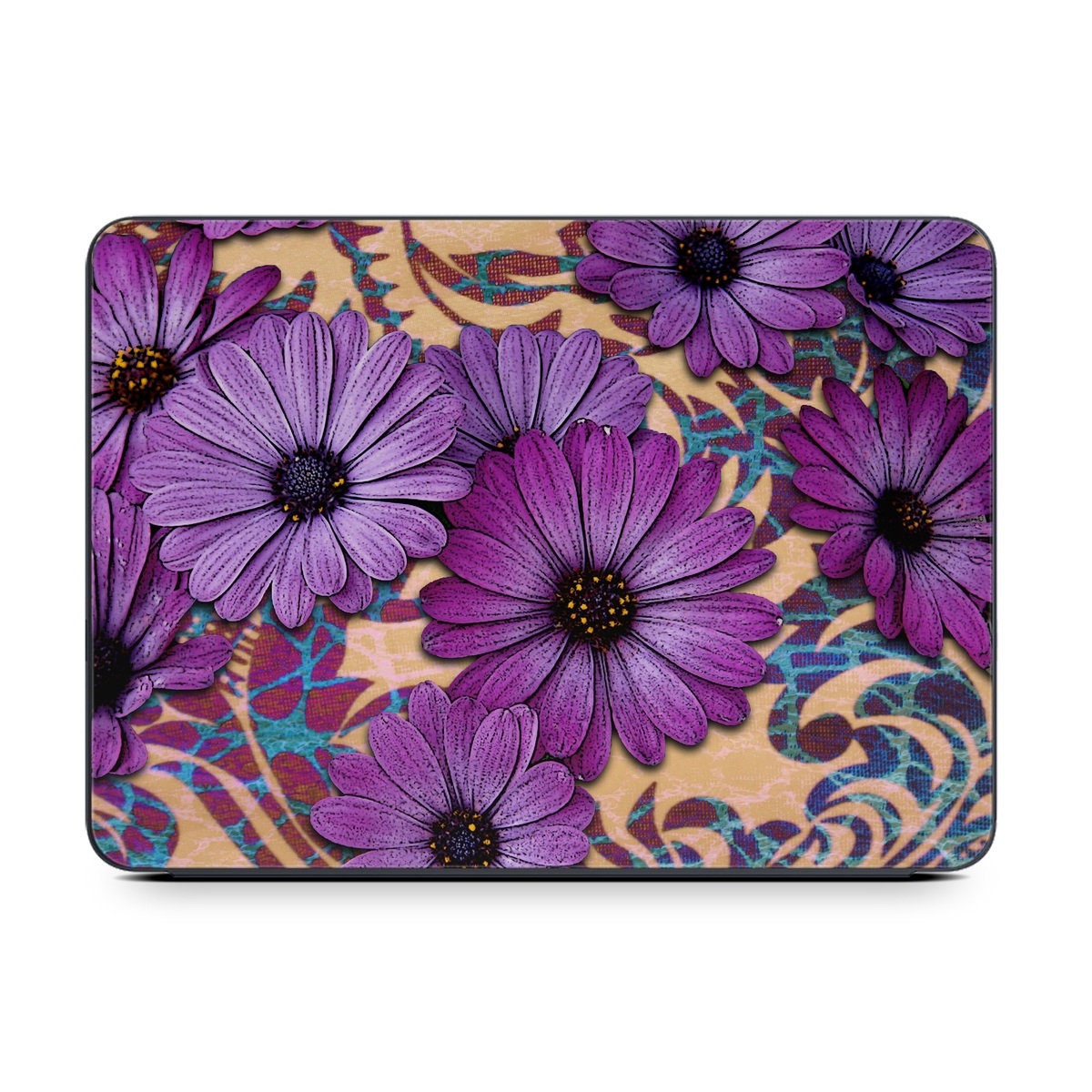 iStyles Smart Keyboard Folio for iPad Series Skin design of Purple, Flower, Violet, Petal, Plant, african daisy, Floral design, Wildflower, Pattern, Textile, with purple, black, gray, blue, green, red colors, and tagged with flowers, patterns.