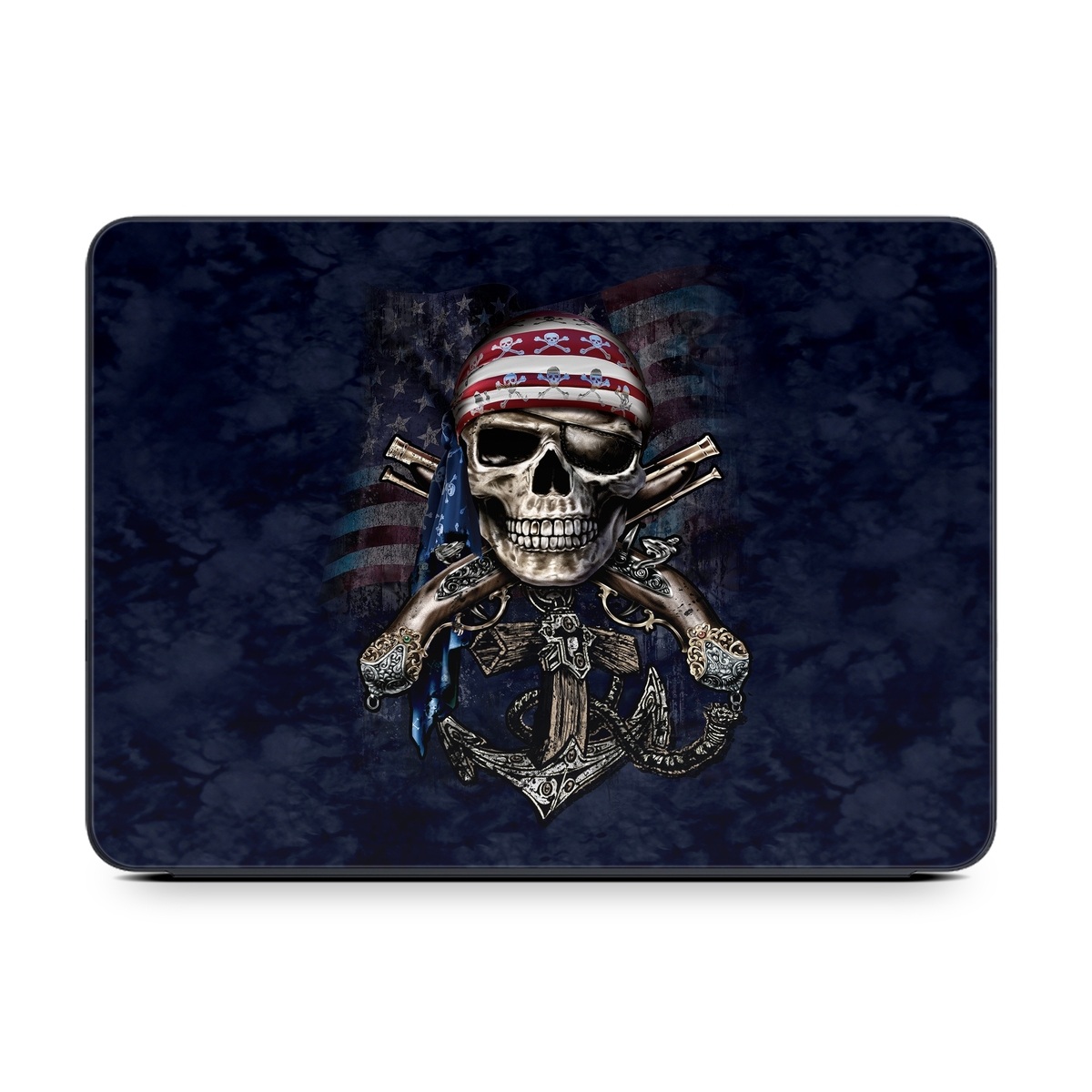 iStyles Smart Keyboard Folio for iPad Series Skin design of Skull, Bone, Skeleton, Illustration, Outerwear, T-shirt, Flag, Art, with black, gray, red colors, and tagged with skulls, flags, objects.