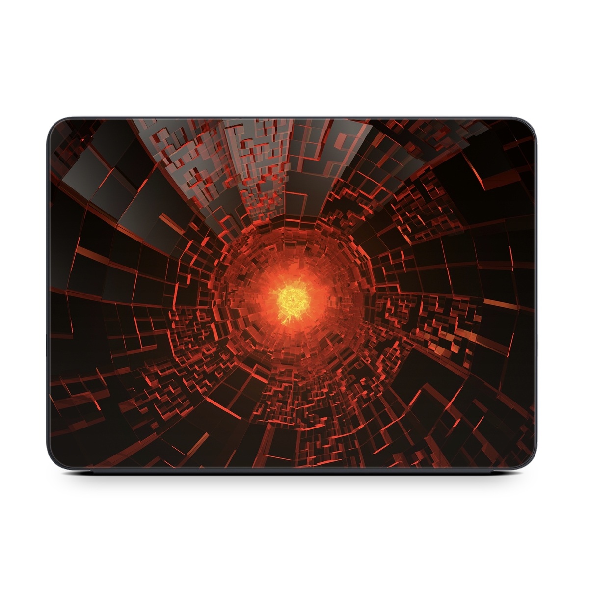 iStyles Smart Keyboard Folio for iPad Series Skin design of Red, Fractal art, Light, Circle, Design, Art, Graphics, Symmetry, Pattern, Space, with black, red colors, and tagged with patterns.