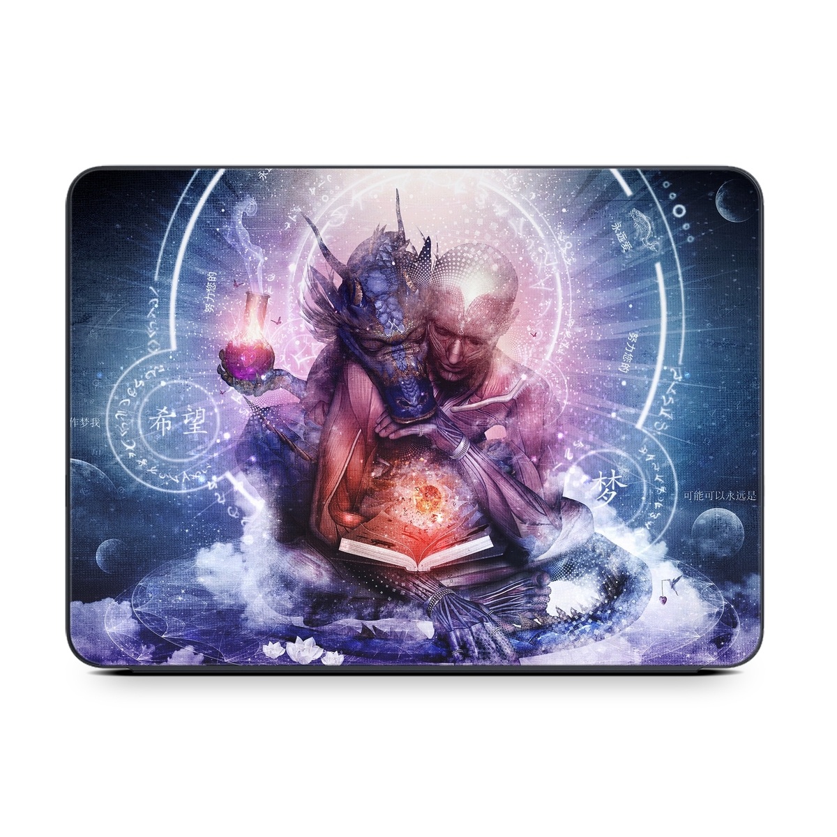 iStyles Smart Keyboard Folio for iPad Series Skin design of Cg artwork, Illustration, Graphic design, Fictional character, Mythology, Graphics, Space, Art, Darkness, with blue, black, red, yellow, white colors, and tagged with people, fantasy, animals, signs, hearts, astrology, cosmic, dmt, dragon, dragons, fantasy, love, lsd, magic, planets, popular, scifi, space, stars, symbols, trippy, zodiac.