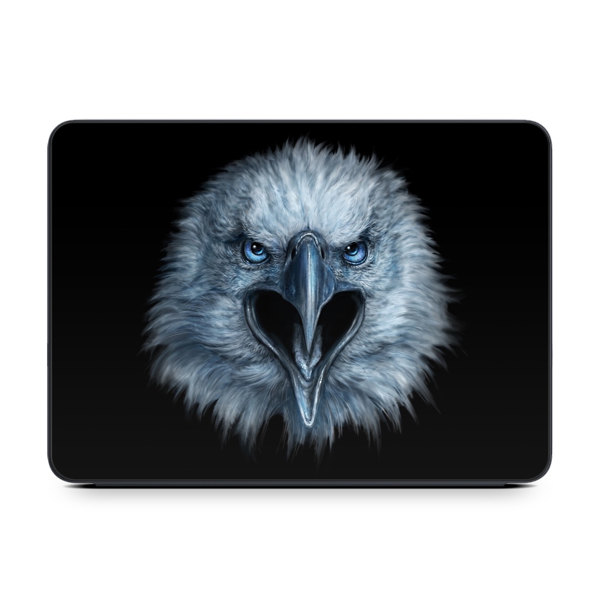 iStyles Smart Keyboard Folio for iPad Series Skin design of Bird, Vertebrate, Bird of prey, Beak, Eagle, Wildlife, Organ, Close-up, Eye, Accipitriformes, with white, gray, black, blue colors, and tagged with animals, bigfaces, bird, birds, eagle, eagles, headshot, nature, outdoors, wildlife.
