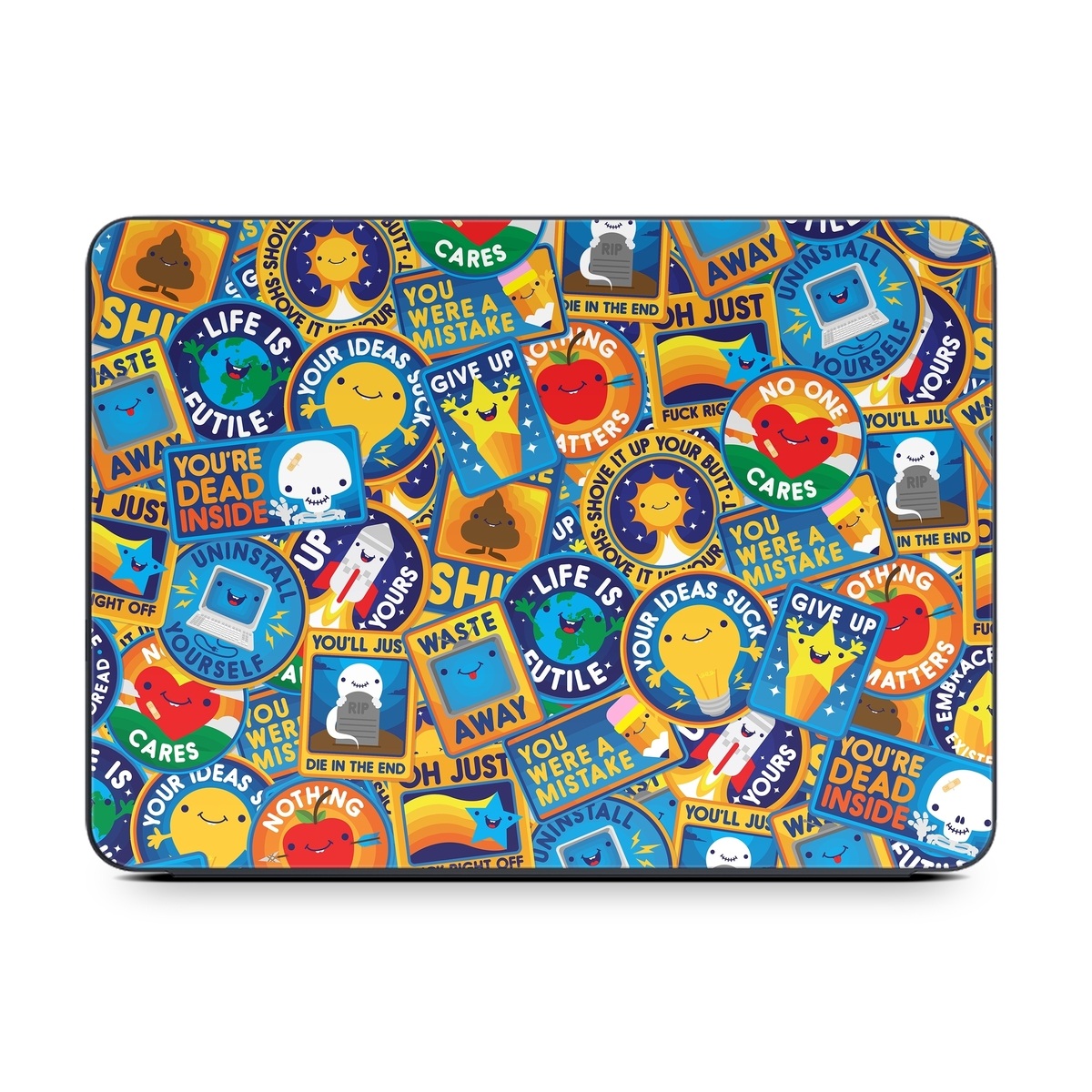 iStyles Smart Keyboard Folio for iPad Series Skin design of Pattern, Visual arts, Design, Art, Mosaic, Psychedelic art, with blue, yellow, orange, white, green, red, gray colors, and tagged with patterns, signs, space, objects, hearts, fuck, funny, humor.