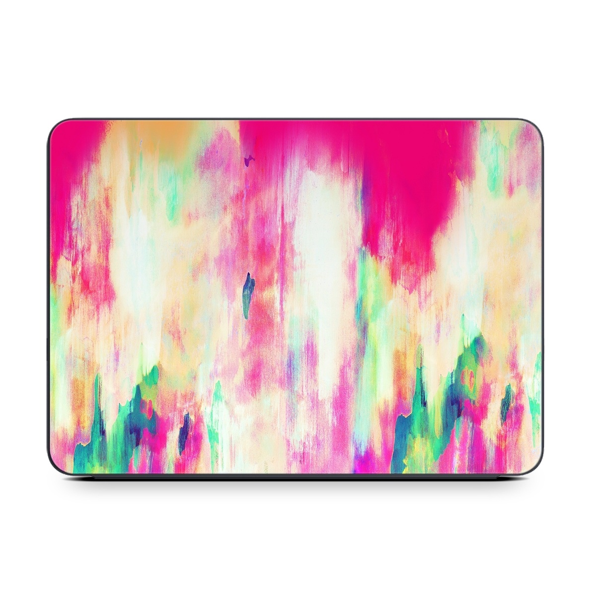 iStyles Smart Keyboard Folio for iPad Series Skin design of Pink, Magenta, Art, Watercolor paint, Dye, Visual arts, Pattern, Modern art, Painting, Acrylic paint, with red, white, green colors, and tagged with abstract, patterns.