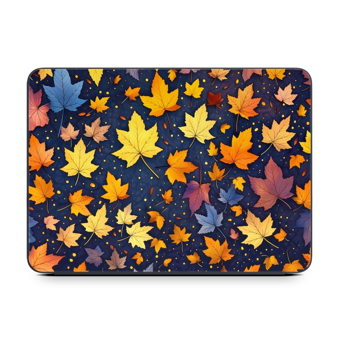 iStyles Smart Keyboard Folio for iPad Series Skin design of Orange, Line, Pattern, Electric blue, Symmetry, Groundcover, Flowering plant, Design, Flower, Art, with yellow, orange, red, black, blue, purple colors, and tagged with nature, patterns, autumn, fall, leaves.