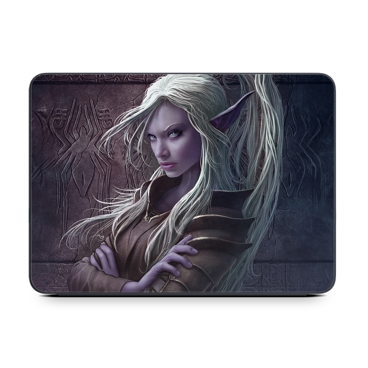 iStyles Smart Keyboard Folio for iPad Series Skin design of Cg artwork, Beauty, Purple, Lady, Illustration, Fictional character, Long hair, Photography, Art, Portrait, with black, gray, purple colors, and tagged with fantasy, people, elf, purple.