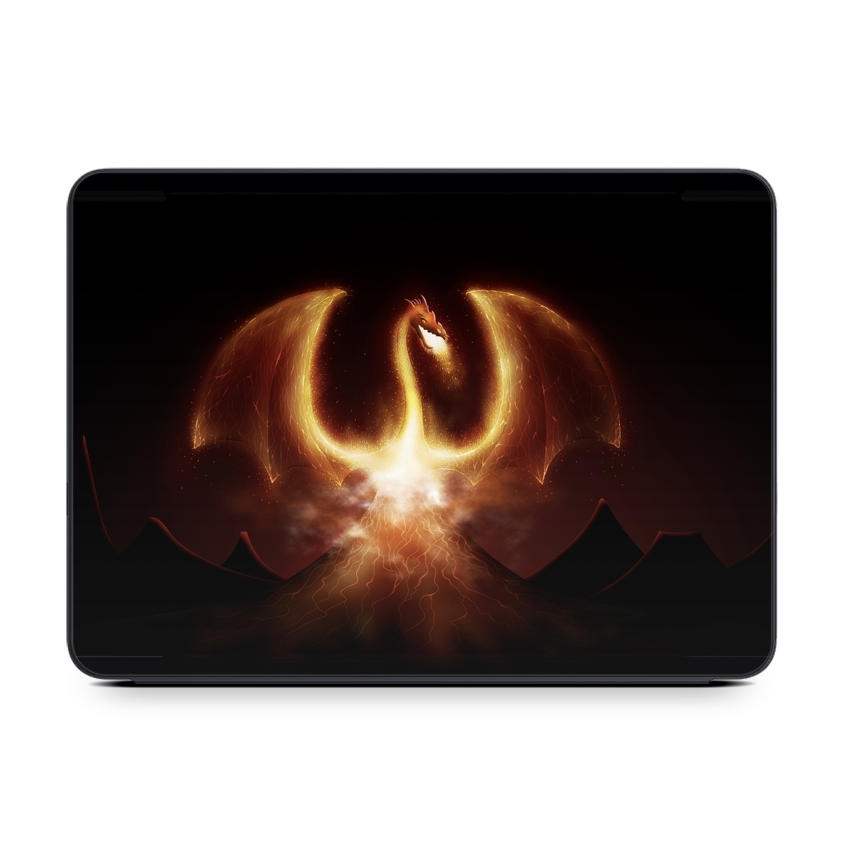iStyles Smart Keyboard Folio for iPad Series Skin design of Light, Atmosphere, Orange, Space, Heat, Sky, Darkness, Art, Geological phenomenon, Universe, with black, red, green, pink colors, and tagged with flames, fantasy.