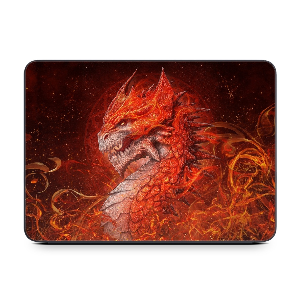 iStyles Smart Keyboard Folio for iPad Series Skin design of Fictional character, Cg artwork, Illustration, Art, Demon, Geological phenomenon, Mythical creature, Dragon, Cryptid, with red, orange, yellow colors, and tagged with fantasy, animals.