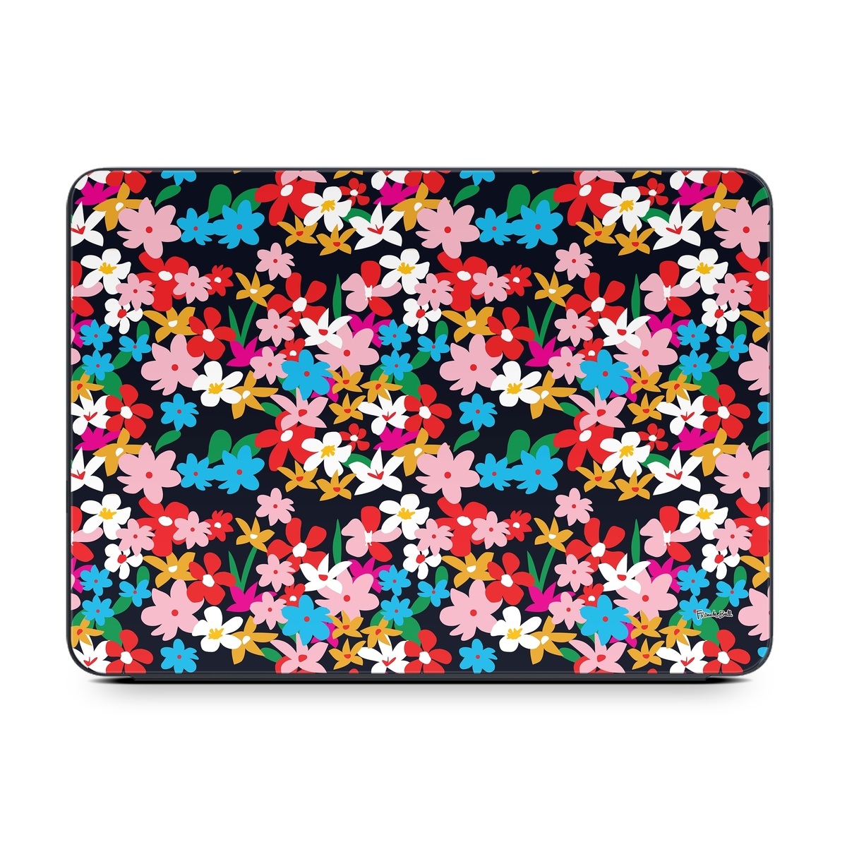 iStyles Smart Keyboard Folio for iPad Series Skin design of Colorfulness, Pattern, Art, Magenta, Rectangle, Event, Petal, Electric blue, Visual arts, with black, red, pink, white, blue, orange, green colors, and tagged with patterns, flowers, bright, color, colorful, colors, floral, flower, flowers, garden, gardening.