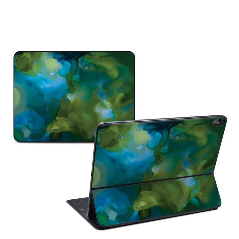 iStyles Smart Keyboard Folio for iPad Series Skin design of Aqua, Blue, Green, Painting, Turquoise, Teal, Water, Acrylic paint, Art, Organism, with blue, green colors, and tagged with abstract, abstract, blue, green, marble, marbled, watercolor.