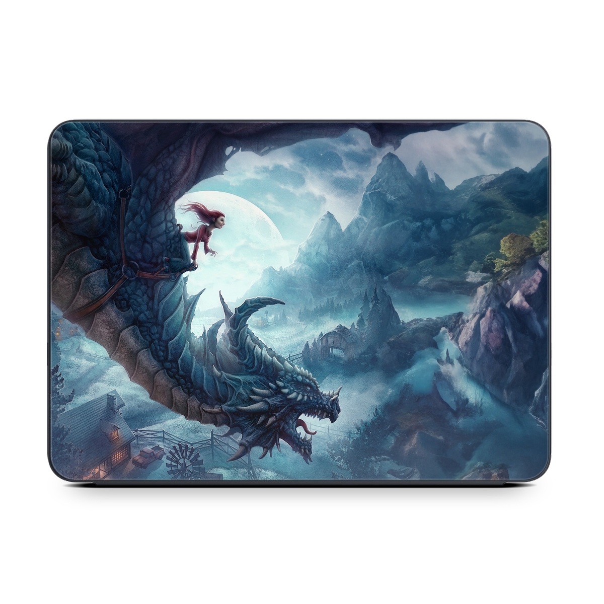iStyles Smart Keyboard Folio for iPad Series Skin design of Dragon, Cg artwork, Illustration, Action-adventure game, Fictional character, Mythical creature, Mythology, Fiction, Cryptid, Extinction, with blue, white, brown, green colors, and tagged with fantasy, animals, people, nature, urban, dragon, fantasy, girl, night, woman.