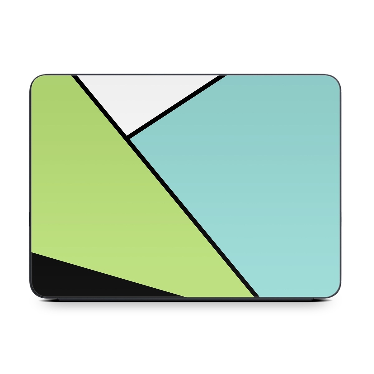 iStyles Smart Keyboard Folio for iPad Series Skin design of Green, Line, Blue, Triangle, Design, Parallel, Pattern, Graphic design, Slope, with white, black, green, blue colors, and tagged with patterns, block, blocking, color, colorblock, geometric, shape, simple.