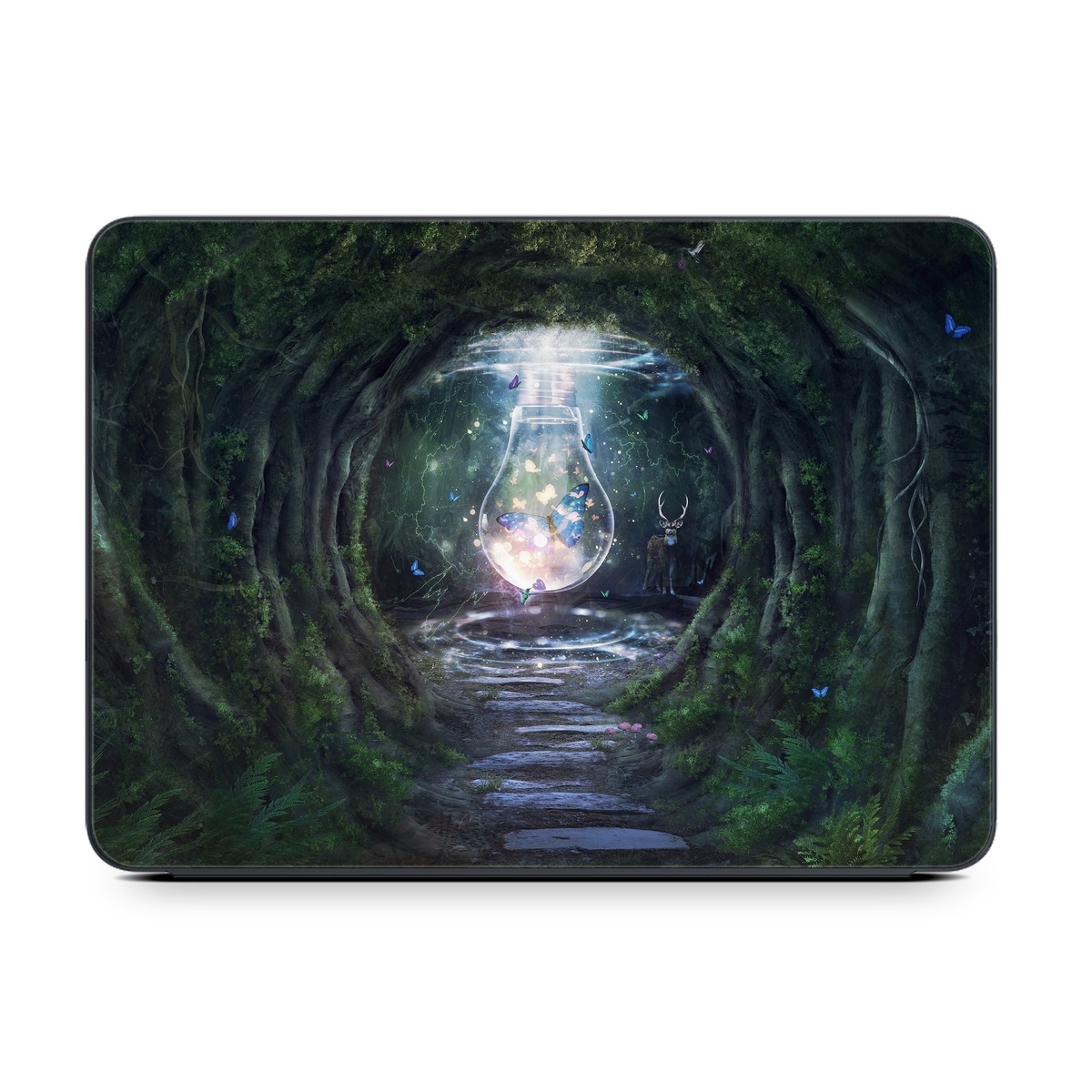 iStyles Smart Keyboard Folio for iPad Series Skin design of Nature, Green, Darkness, Natural environment, Light, Infrastructure, Tunnel, Tree, Forest, Art, with white, black, brown, green, blue, yellow colors, and tagged with fantasy, animals, nature, animals, butterfly, deer, fantasy, forest, sci-fi, woods.