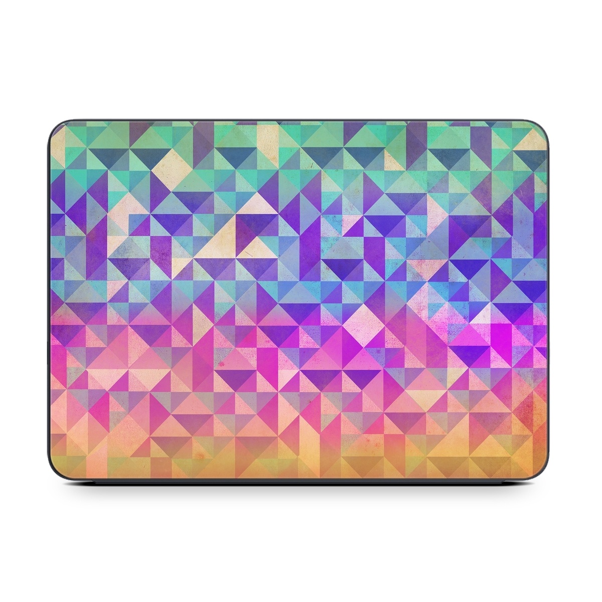iStyles Smart Keyboard Folio for iPad Series Skin design of Pattern, Purple, Triangle, Violet, Magenta, Line, Design, Symmetry, Psychedelic art, with gray, purple, green, blue, pink colors, and tagged with patterns.