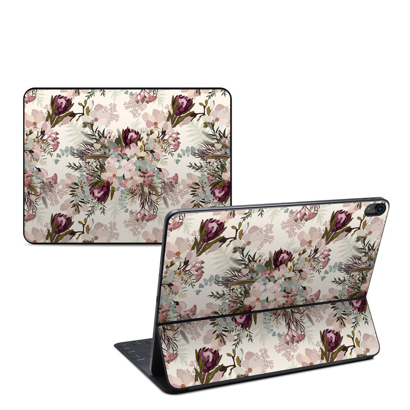 iStyles Smart Keyboard Folio for iPad Series Skin design of Pink, Pattern, Lilac, Flower, Plant, Petal, Floral design, Textile, Design, Blossom, with white, red, pink, blue, brown colors, and tagged with patterns, flowers, nature, bouquet, filigree, floral, flower, flowers, pastel.