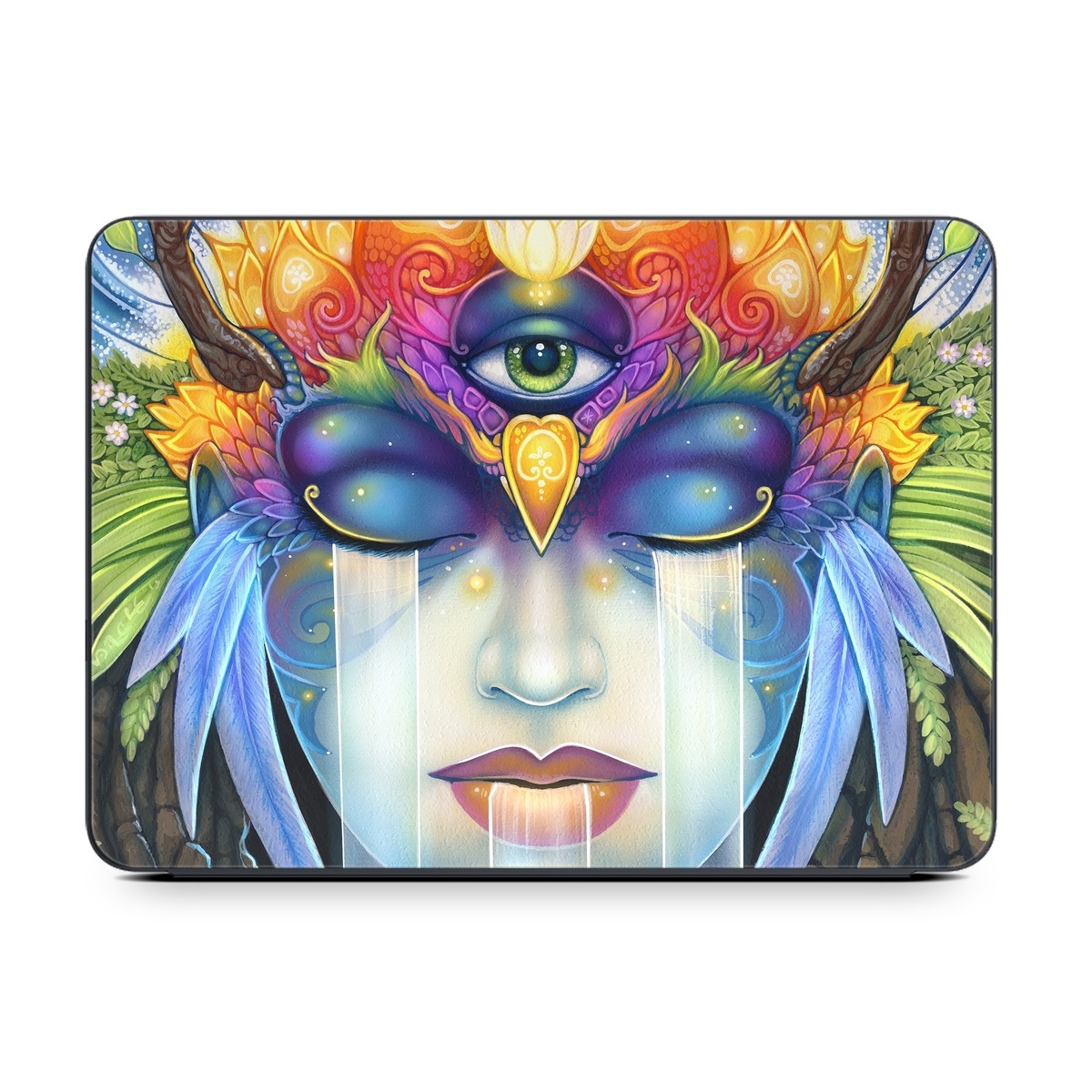 iStyles Smart Keyboard Folio for iPad Series Skin design of Art paint, Paint, Painting, Art, Illustration, Fictional character, Symmetry, Cg artwork, Visual arts, Electric blue, with blue, yellow, orange, red, purple, blue, green, brown, gray colors, and tagged with fantasy, people, nature, flames, earth, terra, primordial, deities, ancestral, mother, uranus, titans, cyclopes, giants, pontus, eye, leaves.