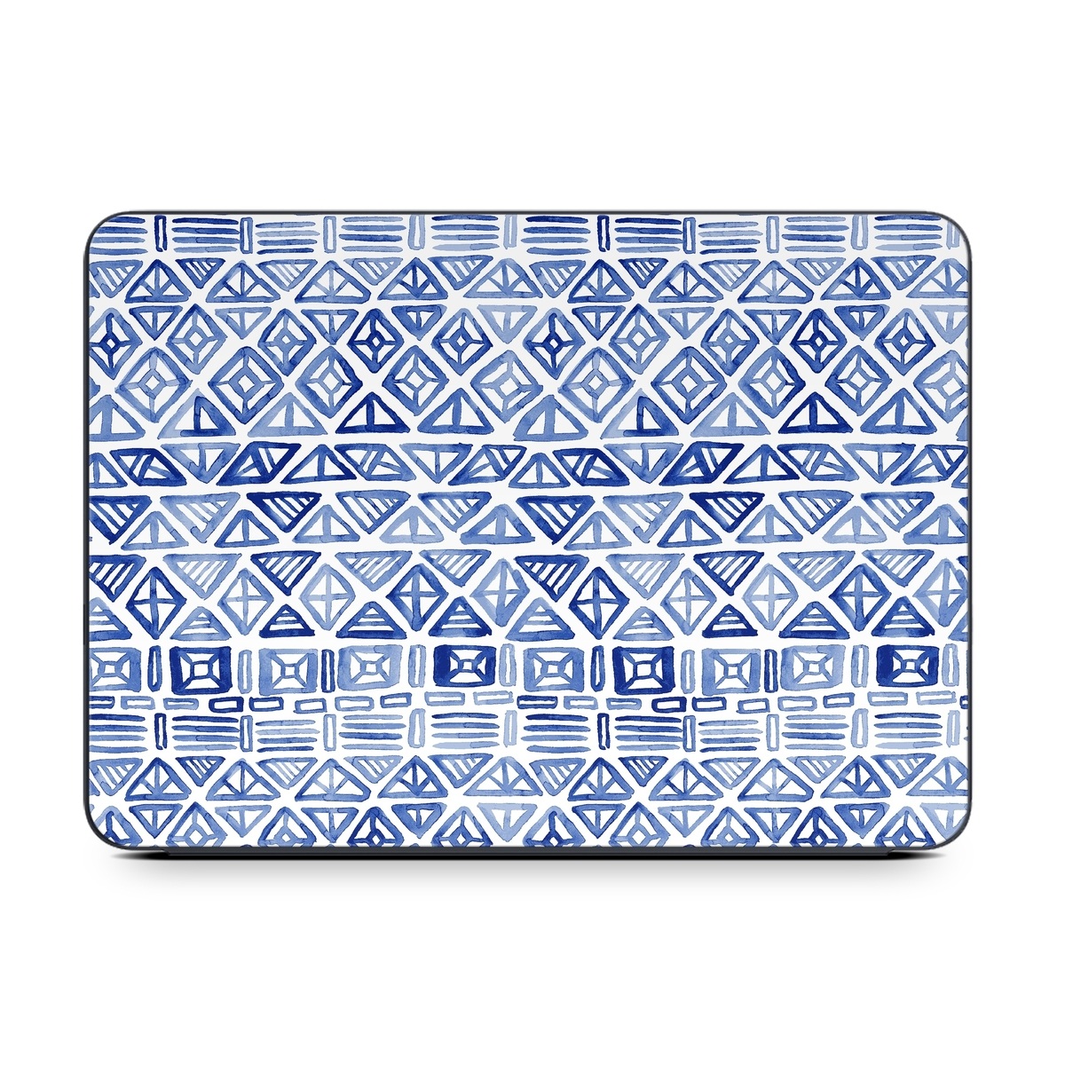 iStyles Smart Keyboard Folio for iPad Series Skin design of Pattern, Line, Design, Symmetry, Visual arts, Parallel, with white, blue colors, and tagged with patterns, blue, geometric, magpiemoon, pattern, tribal, watercolor, white.