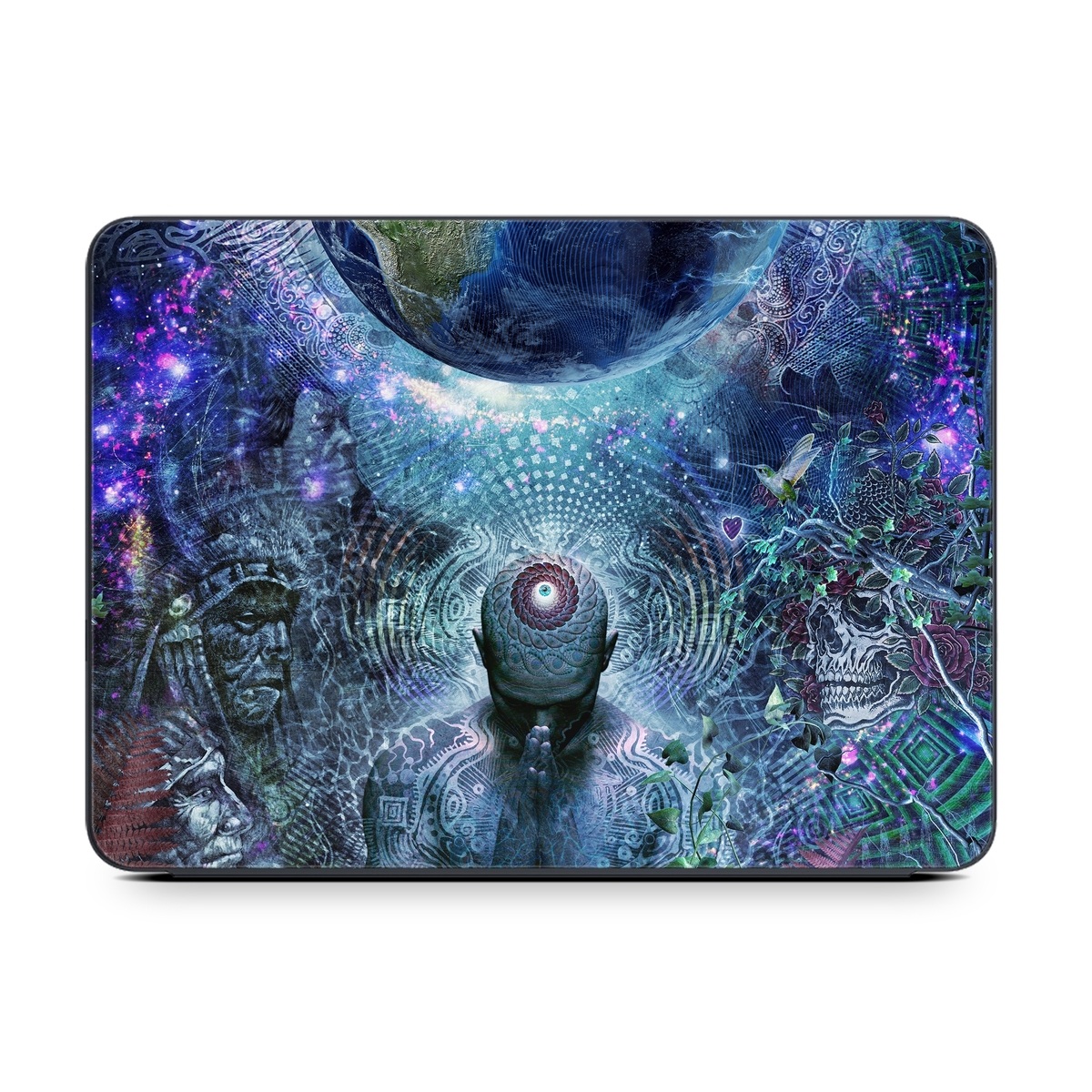 iStyles Smart Keyboard Folio for iPad Series Skin design of Psychedelic art, Fractal art, Art, Space, Organism, Earth, Sphere, Graphic design, Circle, Graphics, with blue, green, gray, purple, pink, black, white colors, and tagged with people, fantasy, space, signs, dmt, fantasy, gratitude, indian, jungle, love, lsd, nativeamerican, nature, peace, plants, ritual, scifi, skulls, space, spirits, spiritual, symbols, trippy, world, worldpeace.
