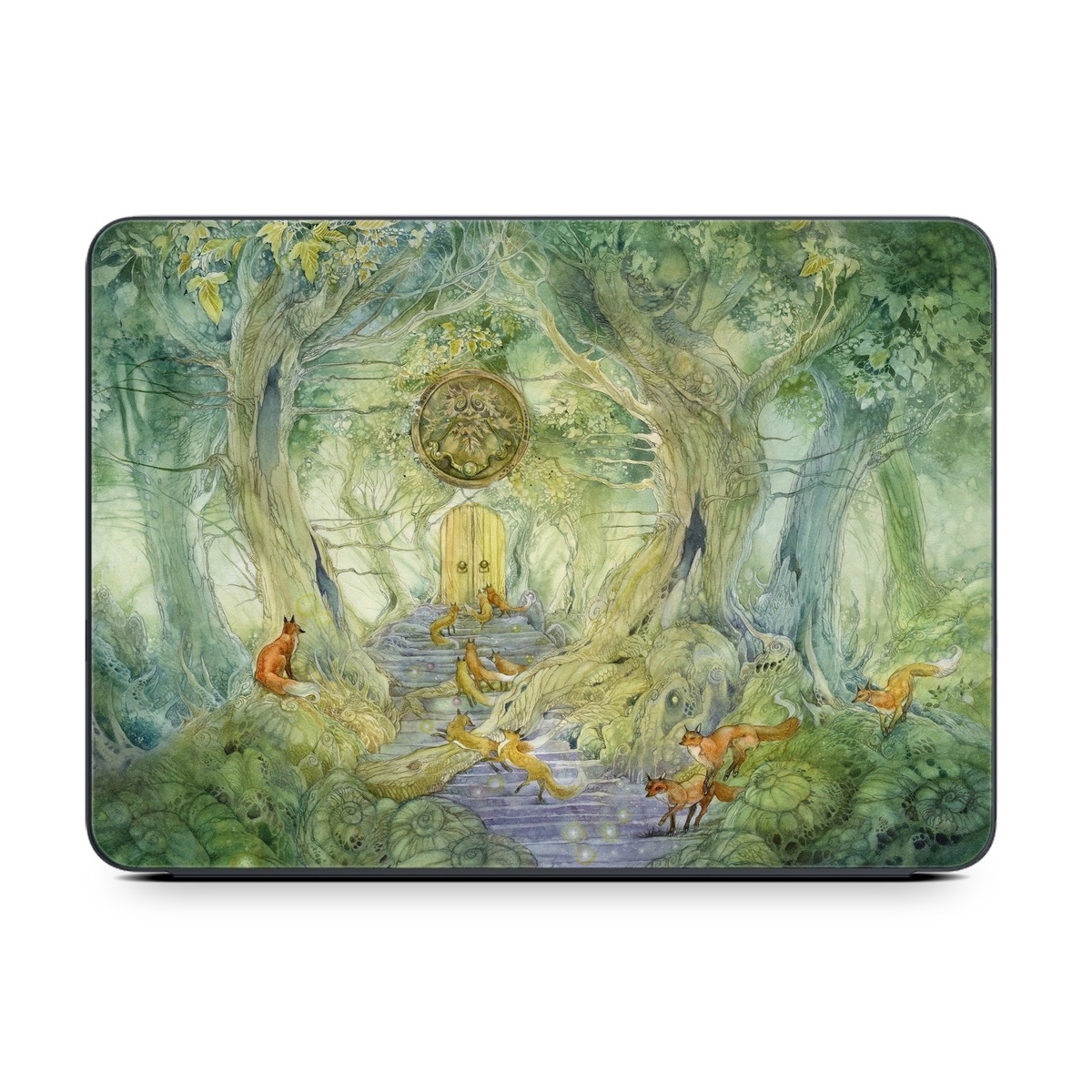 iStyles Smart Keyboard Folio for iPad Series Skin design of Painting, Art, Mythology, Visual arts, Watercolor paint, Organism, Fictional character, Modern art, Landscape, Acrylic paint, with green, brown, red, yellow, blue, purple colors, and tagged with animals, nature, fantasy, animals, forest, fox, landscape, sci-fi, woods.