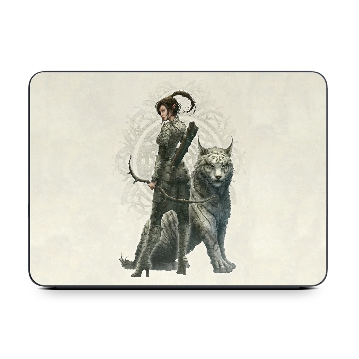iStyles Smart Keyboard Folio for iPad Series Skin design of Illustration, Fictional character, Drawing, Woman warrior, Art, Mythology, Sketch, with gray, black, pink, yellow, green colors, and tagged with fantasy, animals, objects, people.