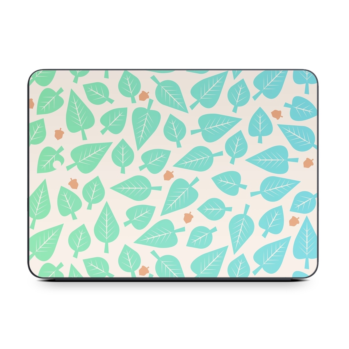 iStyles Smart Keyboard Folio for iPad Series Skin design of Aqua, Pattern, Turquoise, Teal, Wrapping paper, Design, Wallpaper, with yellow, green, orange colors, and tagged with patterns, nature, objects, animal, crossing, gaming, leaf, leaves, nature, trees.