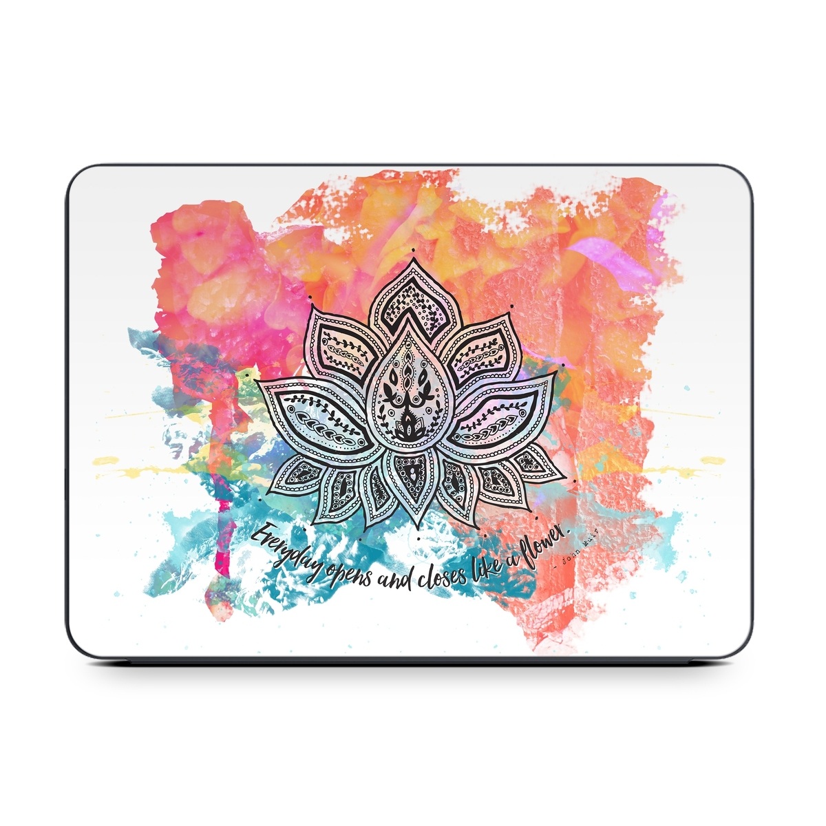 iStyles Smart Keyboard Folio for iPad Series Skin design of Pink, Leaf, Pattern, Design, Graphic design, Illustration, Symmetry, Visual arts, Art, Plant, with orange, yellow, red, blue, green, black colors, and tagged with signs, flowers, colorful, flower, lotus.