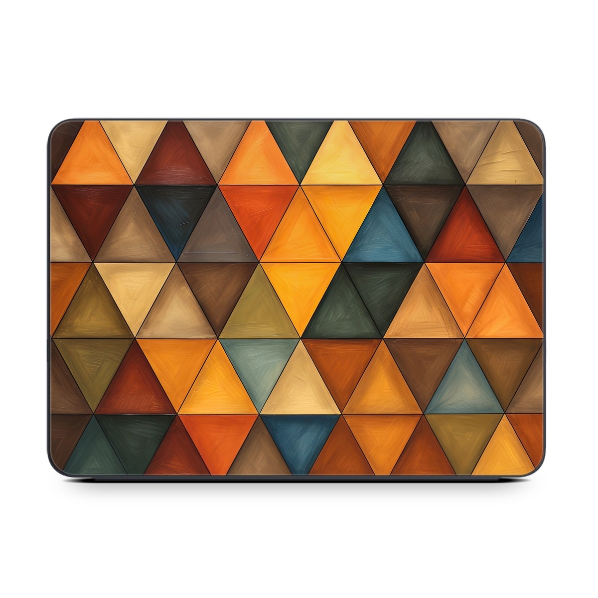 iStyles Smart Keyboard Folio for iPad Series Skin design of Brown, Colorfulness, Rectangle, Azure, Amber, Orange, Triangle, Art, Flooring, Line, with yellow, orange, red, black, blue, brown colors, and tagged with patterns, autumn, fall, pattern, triangles.