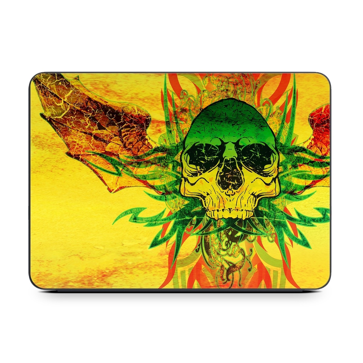 iStyles Smart Keyboard Folio for iPad Series Skin design of Psychedelic art, Skull, Illustration, Bone, Art, Graphic design, Visual arts, Poster, Plant, Painting, with green, orange, black, red colors, and tagged with skulls.