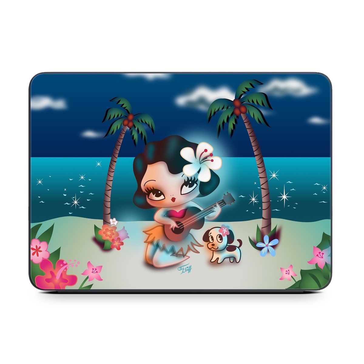 iStyles Smart Keyboard Folio for iPad Series Skin design of Cartoon, Animated cartoon, Illustration, Animation, Fictional character, Plant, Art, Clip art, with blue, white, brown, pink, green, yellow, red colors, and tagged with animals, objects, flowers, nature, people, beach, cartoon, flower, flowers, hawaii, hawaiian, hula, ocean, pinup, pinupgirl, tropic, tropical.