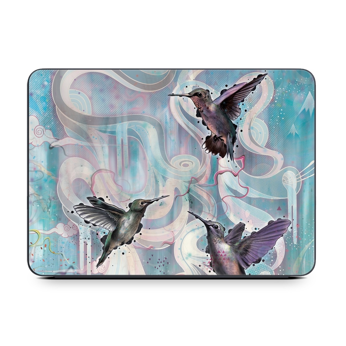 iStyles Smart Keyboard Folio for iPad Series Skin design of Bird, Watercolor paint, Illustration, Hummingbird, Painting, Art, Wing, Fictional character, Acrylic paint, Perching bird, with gray, blue, black colors, and tagged with animals, patterns.