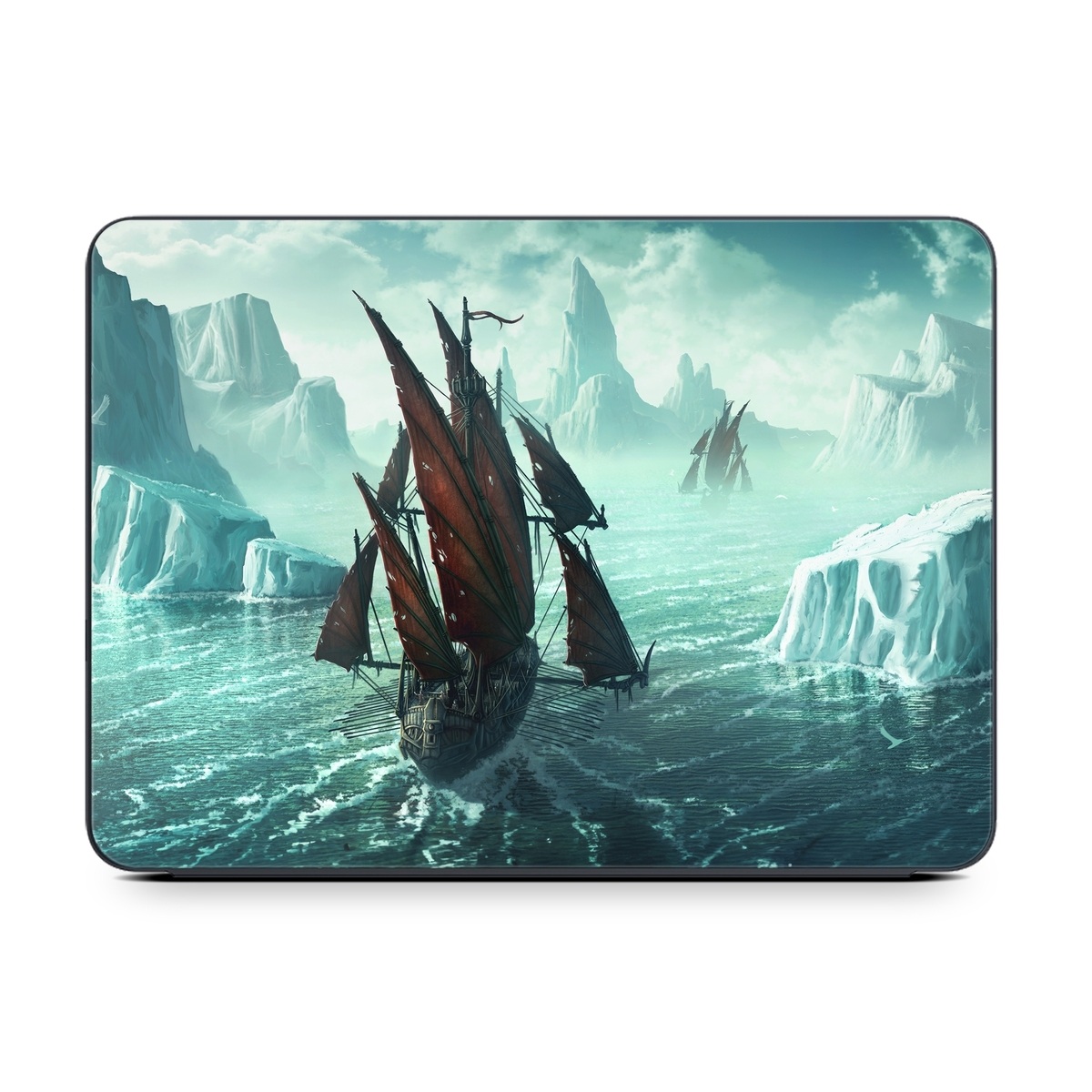 iStyles Smart Keyboard Folio for iPad Series Skin design of Cg artwork, Vehicle, Ghost ship, Manila galleon, Fluyt, Adventure game, First-rate, Sailing ship, Mythology, Strategy video game, with gray, black, blue, green, white colors, and tagged with fantasy, objects, nature.
