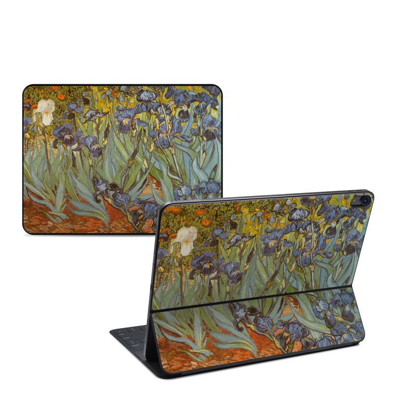 iStyles Smart Keyboard Folio for iPad Series Skin design of Painting, Plant, Art, Flower, Iris, Modern art, Perennial plant, with gray, green, black, red, blue colors, and tagged with fineart, flowers.