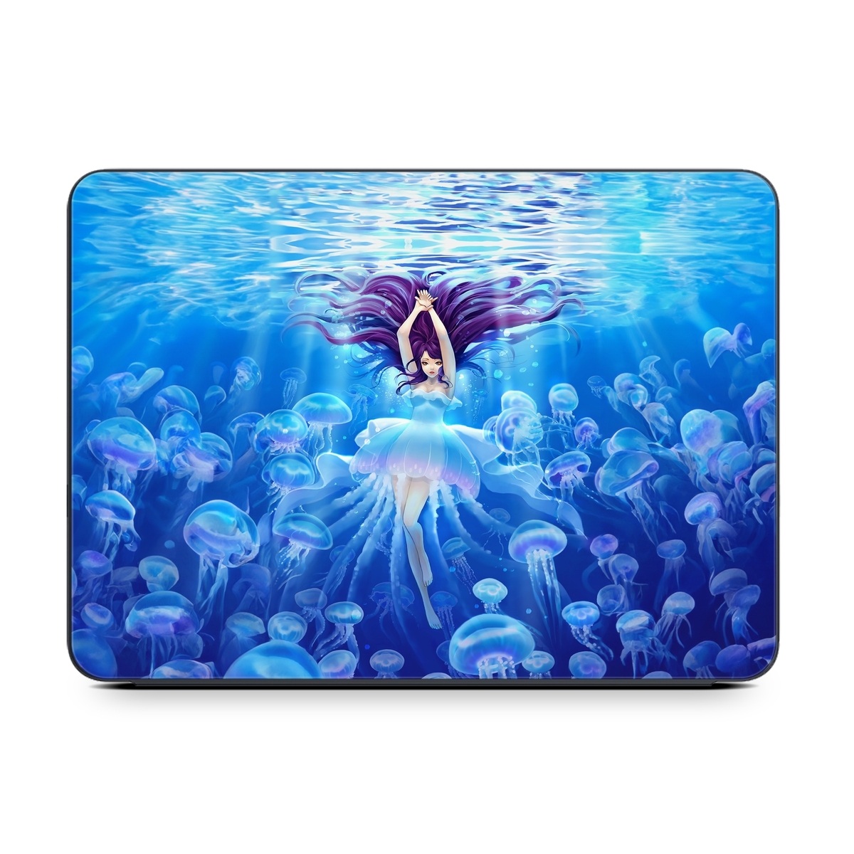 iStyles Smart Keyboard Folio for iPad Series Skin design of Jellyfish, Cnidaria, Organism, Marine biology, Marine invertebrates, Water, Bioluminescence, Illustration, Electric blue, Fictional character, with blue, purple, gray colors, and tagged with fantasy, people, aquatic, blue, jellyfish, ocean, sea, sealife.