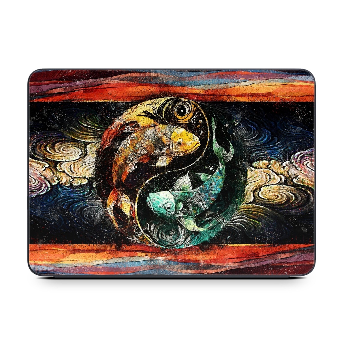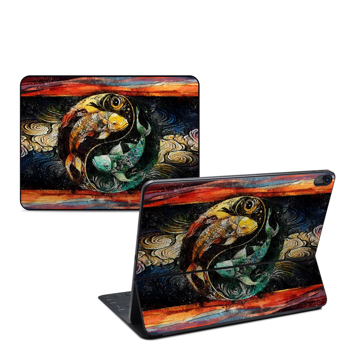 iStyles Smart Keyboard Folio for iPad Series Skin design of Art paint, Paint, Painting, Art, Creative arts, Pattern, Visual arts, Mural, Illustration, Graphics, with black, red, blue, yellow, green, orange, purple colors, and tagged with animals, signs, asian, koi, yin, yang.