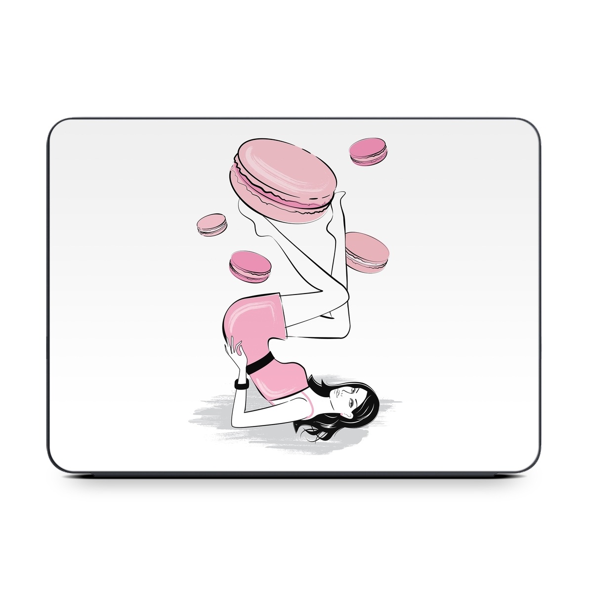 iStyles Smart Keyboard Folio for iPad Series Skin design of Gesture, Pink, Cartoon, Happy, Art, Red, Font, Elbow, Magenta, Thumb, with white, black, pink, gray colors, and tagged with objects, people, girl, macaron, pink.