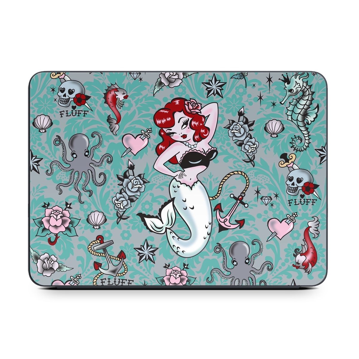 iStyles Smart Keyboard Folio for iPad Series Skin design of Mermaid, Illustration, Fictional character, Organism, Art, Pattern, Style, with gray, blue, black, red, white, pink colors, and tagged with patterns, objects, hearts, people, animals.