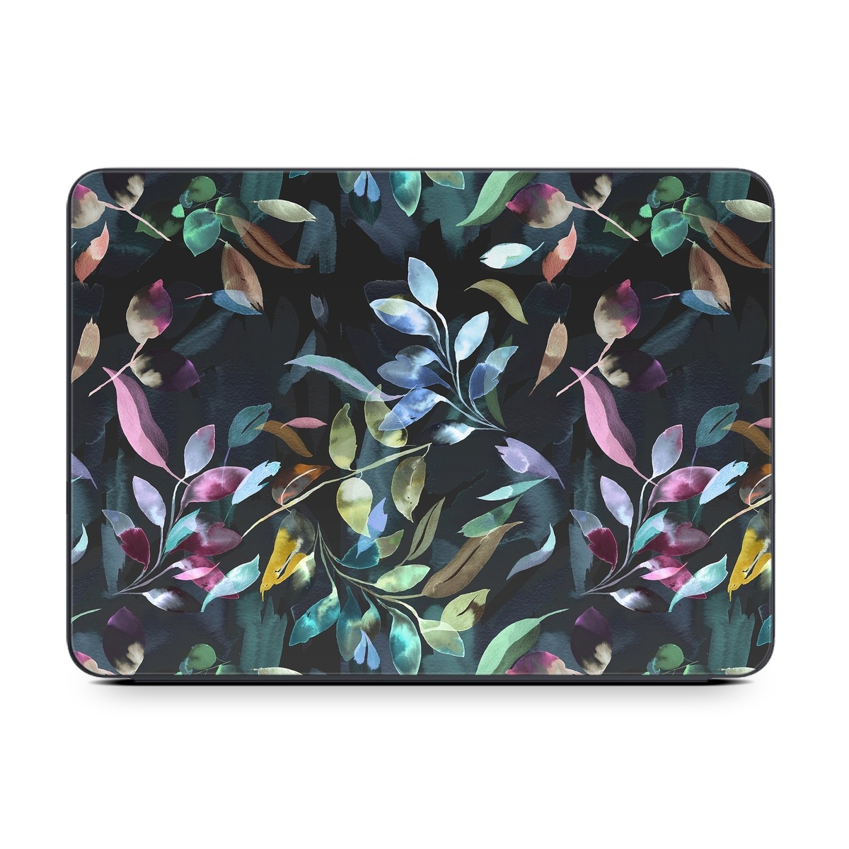 iStyles Smart Keyboard Folio for iPad Series Skin design of Flower, Leaf, Plant, Botany, Organism, Line, Art, Petal, Groundcover, Terrestrial plant, with black, blue, green, purple, pink, red, white colors, and tagged with patterns, nature, leaves, fall, pattern.