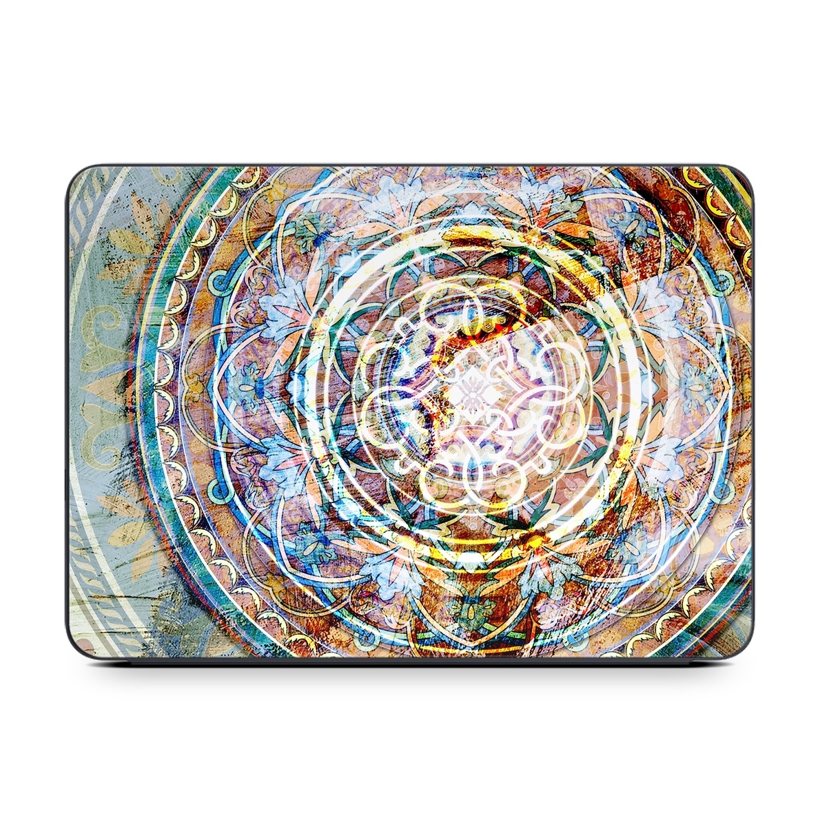 iStyles Smart Keyboard Folio for iPad Series Skin design of Circle, Ceramic, Tableware, with yellow, red, orange, white, blue, green, gray colors, and tagged with patterns, objects, aztec, medallion, tribal.