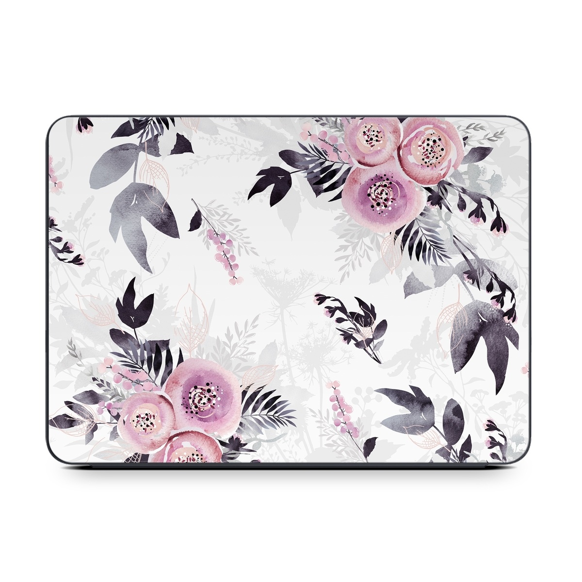 iStyles Smart Keyboard Folio for iPad Series Skin design of Pink, Pattern, Design, Floral design, Textile, Plant, Flower, Magenta, Petal, Wallpaper, with white, purple, pink, black, gray colors, and tagged with patterns, flowers, florals, flowers, pattern, purple, watercolor, white.