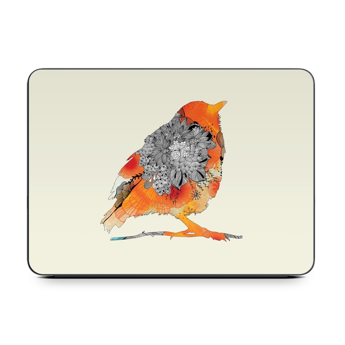 iStyles Smart Keyboard Folio for iPad Series Skin design of European robin, Orange, Bird, Illustration, Old World flycatcher, Drawing, Songbird, Perching bird, robin, Sketch, with gray, yellow, green, red, black colors, and tagged with animals.