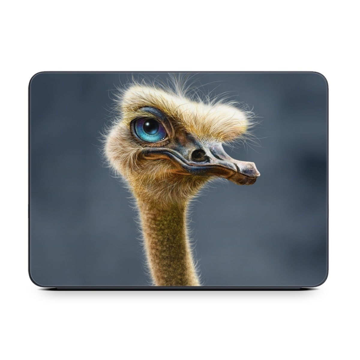 iStyles Smart Keyboard Folio for iPad Series Skin design of Ostrich, Flightless bird, Ratite, Bird, Beak, Close-up, Emu, Wildlife, Organism, Terrestrial animal, with black, gray, blue, green, red colors, and tagged with animals, animal, ostrich, safari, zoo.