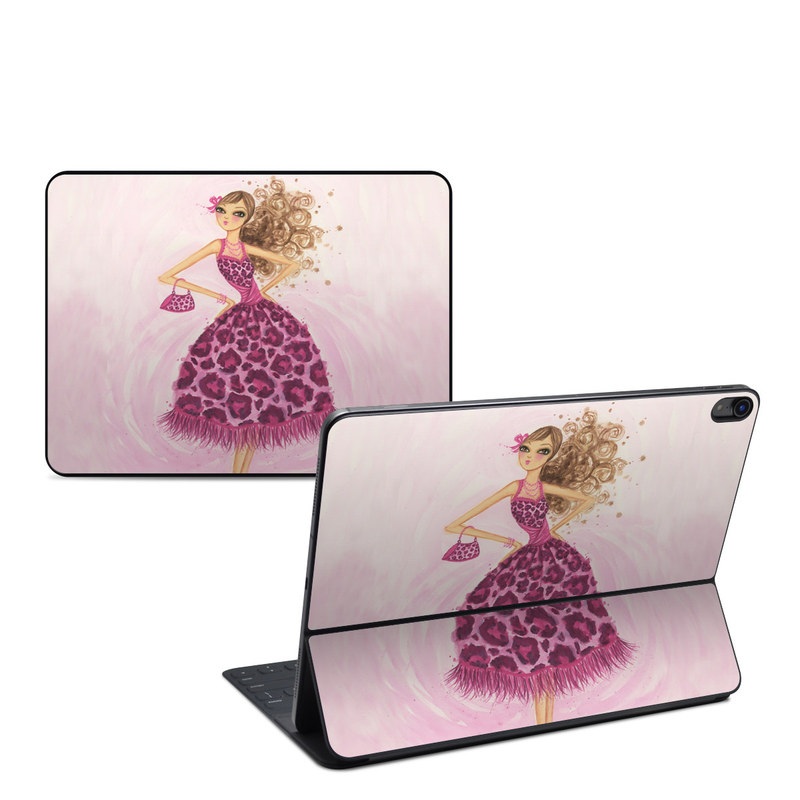 iStyles Smart Keyboard Folio for iPad Series Skin design of Pink, Doll, Dress, Fashion illustration, Barbie, Fashion design, Illustration, Gown, Costume design, Toy, with pink, gray, red, purple, green colors, and tagged with people, objects, fashion.