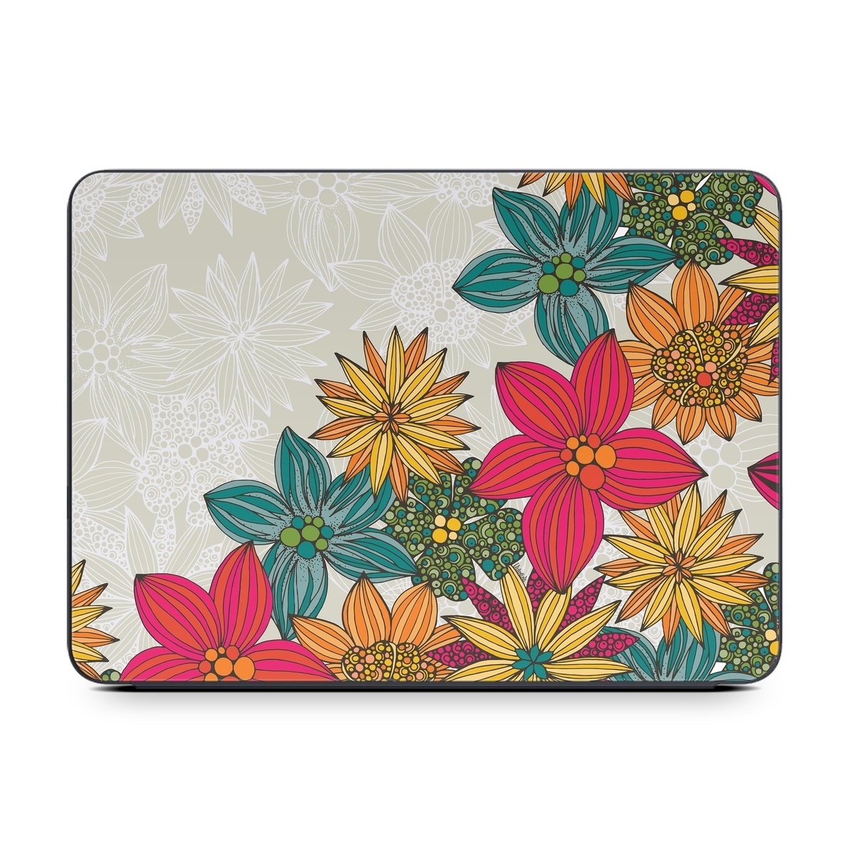 iStyles Smart Keyboard Folio for iPad Series Skin design of Floral design, Pattern, Flower, Wildflower, Plant, Botany, Leaf, Design, Textile, Visual arts, with blue, yellow, red, green, orange, gray colors, and tagged with flowers, patterns.