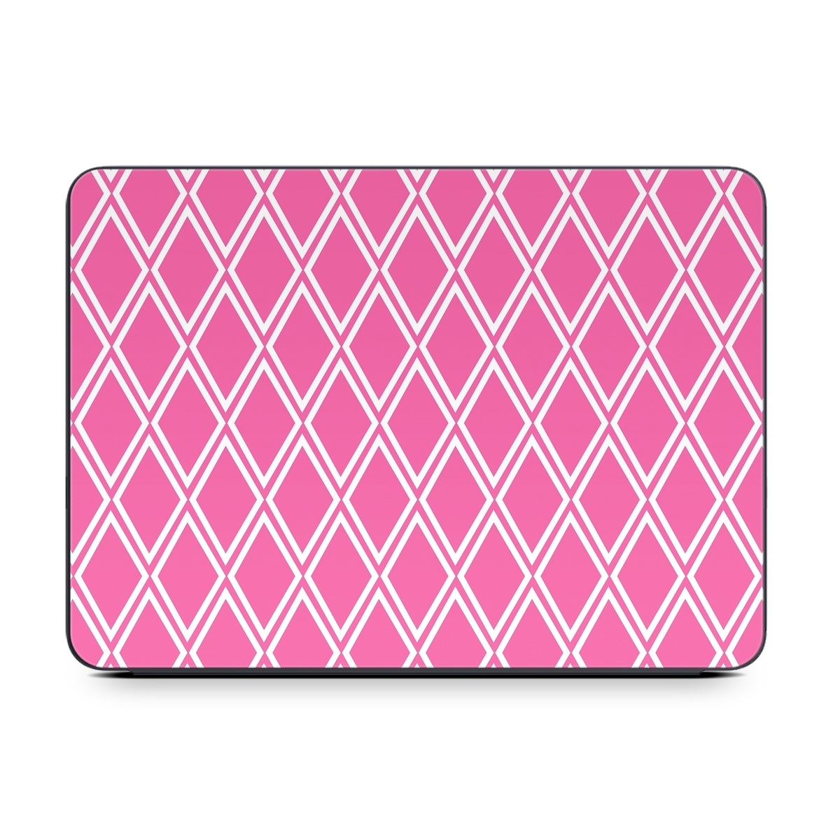 iStyles Smart Keyboard Folio for iPad Series Skin design of Pink, Rectangle, Font, Material property, Magenta, Symmetry, Parallel, Pattern, Peach, Circle, with pink, white colors, and tagged with patterns, checks.