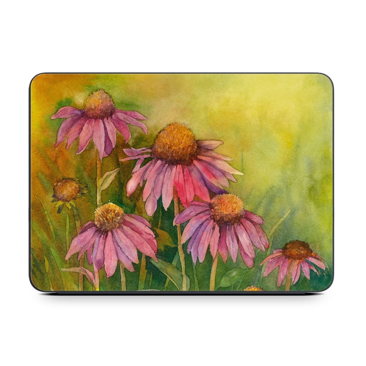 iStyles Smart Keyboard Folio for iPad Series Skin design of Flowering plant, Purple coneflower, Coneflower, Flower, Plant, Watercolor paint, Wildflower, black-eyed susan, Petal, Daisy family, with black, green, red, gray, purple colors, and tagged with flowers, fineart.