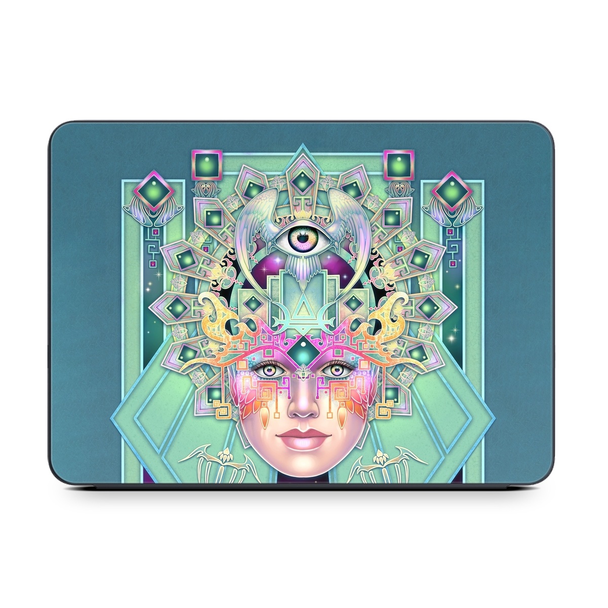 iStyles Smart Keyboard Folio for iPad Series Skin design of Head, Eye, Eyelash, Font, Art, Magenta, Rectangle, Painting, Illustration, Pattern, with blue, green, yellow, red, purple, white colors, and tagged with fantasy, people, signs, objects, eye, wings, thankful.
