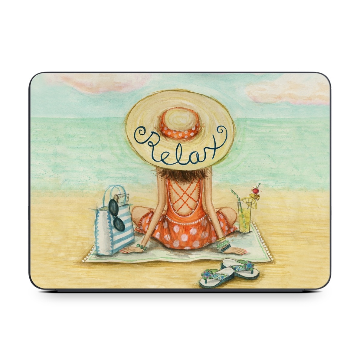 iStyles Smart Keyboard Folio for iPad Series Skin design of Illustration, Cartoon, Watercolor paint, Art, Drawing, Child art, Sketch, Paint, Still life, with white, yellow, blue, red, black, yellow colors, and tagged with people, fineart, nature, objects, beach, drawn, fashion, handdrawn, ocean, sand, summer, vacation, water, drink, cocktail, sunglasses, bag, mat, hat, clouds, sea, sand.