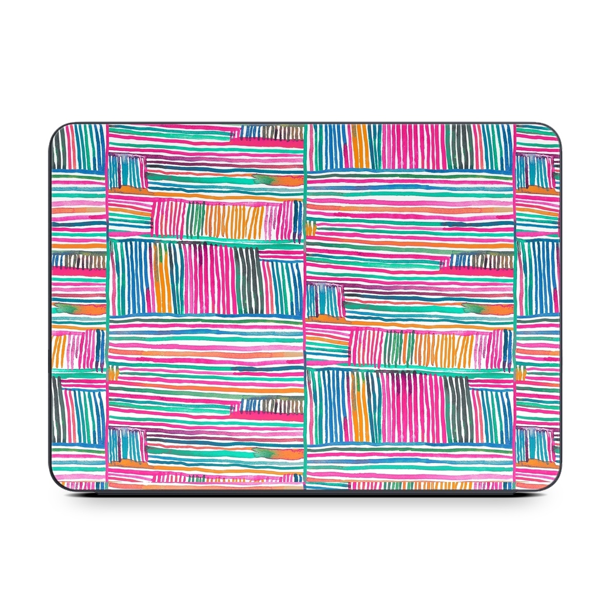 iStyles Smart Keyboard Folio for iPad Series Skin design of Colorfulness, Product, Rectangle, Azure, Textile, Art, Aqua, Material property, Magenta, Tints and shades, with white, pink, orange, green, blue, yellow colors, and tagged with patterns, stripes, pattern.